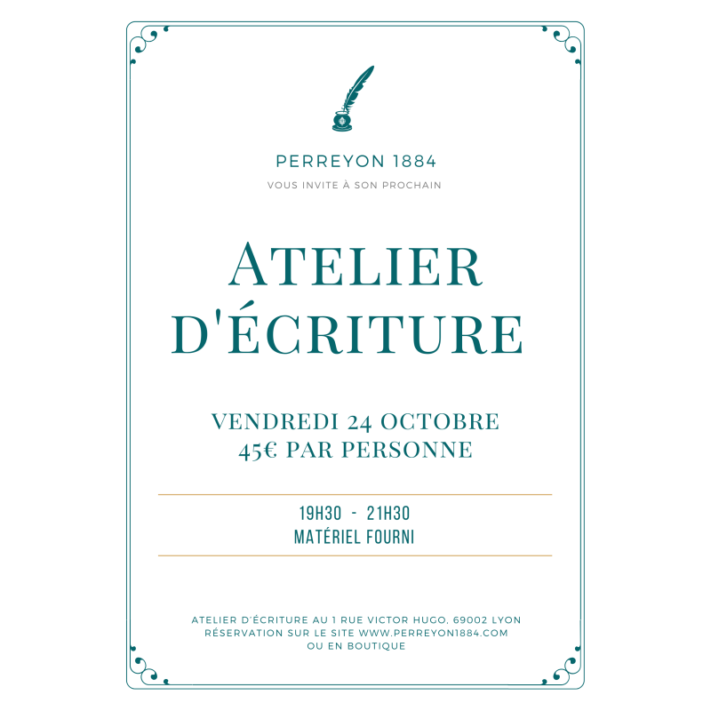 Perreyon 1884 pousse les meubles et vous convie à un atelier d’écriture le vendredi 24 octobre. C'est Elodie Gébleux, graphopédagogue, qui vous proposera une petite traversée inventive pour (re)prendre plaisir d'écrire avec différents stylos, et jouer avec les mots !