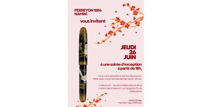 Jeudi 26 juin, à partir de 18h, Namiki et Perreyon 1884 vous invitent à vivre un moment d'exception, entre découverte de ces instrument d'écriture uniques et rencontre autour de la calligraphie.